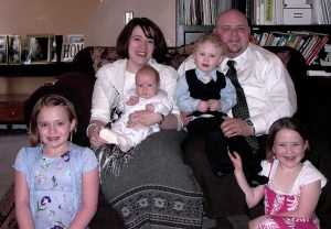 My name is Stacy, I’ve been married to Tom for 11 years, and we have four kids- Abby, 9; Ashlynn who will be 8 in a few weeks and is thrilled to be getting baptized, Max who is 2 ½, and Ian, 6 months. We live in a small-ish town outside of Salt Lake City, UT. My husband has about four different job titles and descriptions, so we can just say that he’s an accountant and also in charge of deploying a huge software project, and I “stay home” with the kids. (And we all know what a joke the staying home part is, right?)