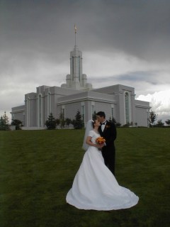 Hi! My name is Laura. I’m so excited to be over here at Diapers and Divinity today. I sometimes forget that I’m not in my 20’s anymore, but I’m actually almost 40. I was born in Michigan, which is also where my family joined the LDS Church when I was still pretty young. I grew up most of my life in the Midwest, the land of green lawns and wet air (gotta love humidity). I served a mission in Australia (Sydney North Mission) from ’93-’94, where I learned to adore real, tree-ripened mangoes and unusual foods from all over the world. After graduating from BYU with my MA degree but no hubby, I headed out to Massachusetts for work. I met Doc through a mutual friend in Iowa (which is a whole ‘nother story I plan to blog about on our anniversary). After a lengthy long-distance courtship of …. (cough, cough) … a few months, we got engaged (double cough, cough) over the phone and were married less than a year after we met.
